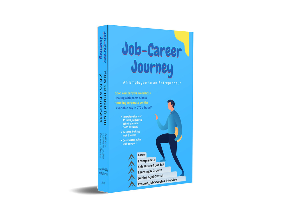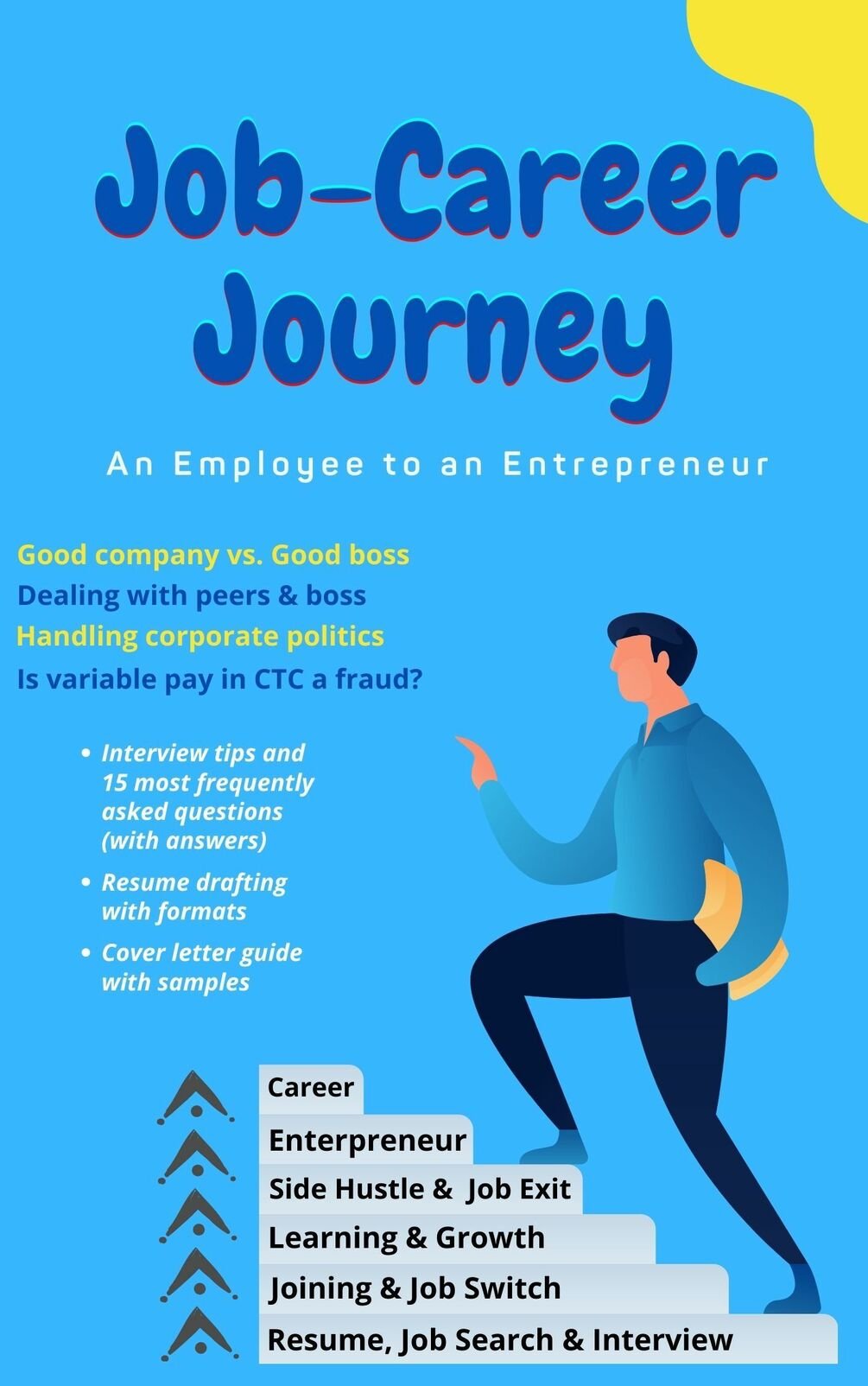 This book is a step by step guide from the day you get qualified to plan landing in your first job (covering skills for Resume, Cover Letter, Job Search, Interview etc.), learning & growing in job (covering extensive learning of corporate systems, handing corporate politics, dealing with boss, peers & third parties etc.) , developing in job & nurturing side hustle as a future career, choosing the right time for a planned exit & moving to entrepreneurship.